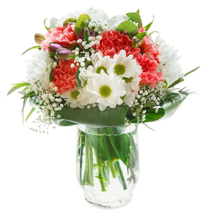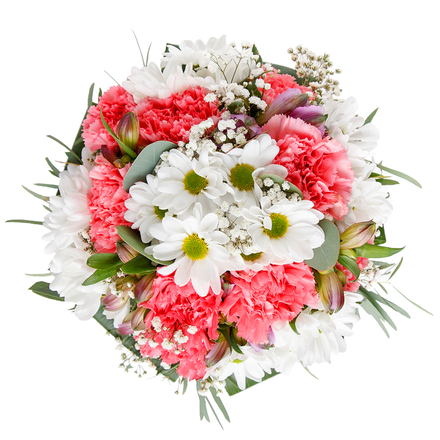 The combination of white chrysanthemums and pink carnations is stunning. Loved it!